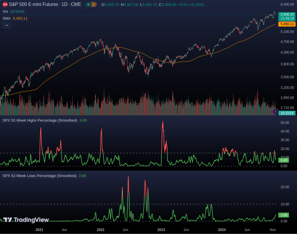 ✔ Breadth – Advance/decline trends, new highs/lows, and participation metrics.